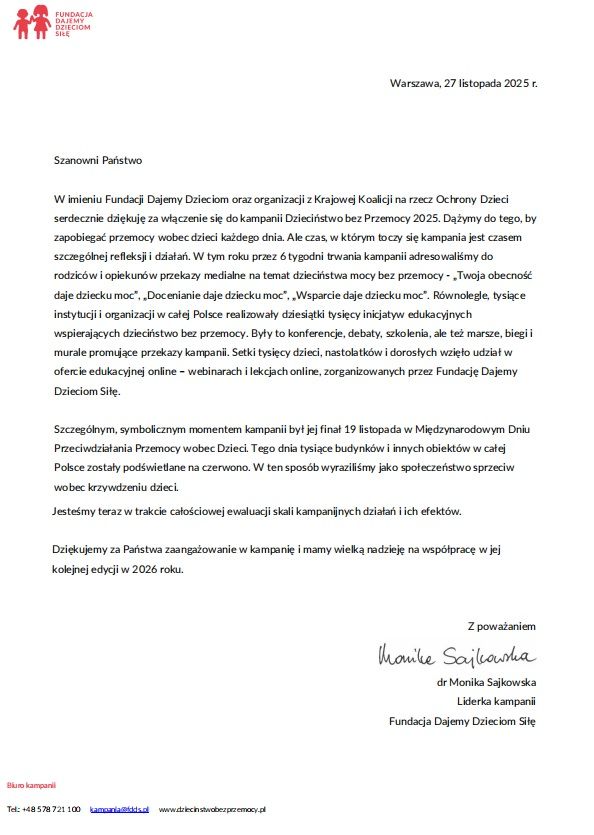 Informujemy, że w czwartek 05.09.2024 r. o godz. 17:30